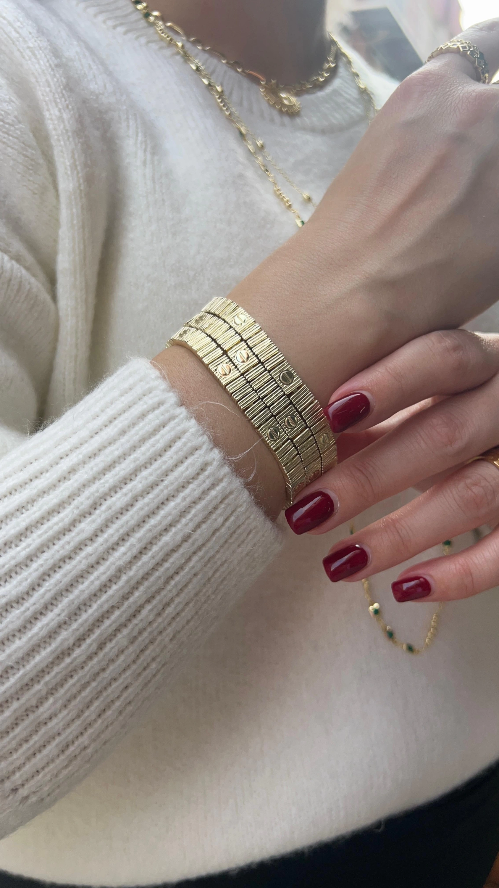 Sıralı Çivi Detay Gold Altın Kaplama Bileklik