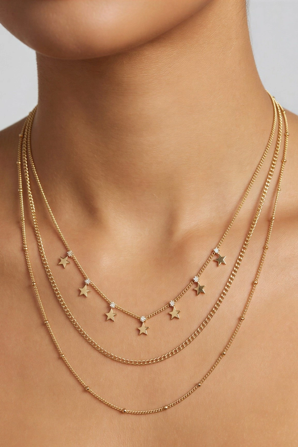 Sıralı Düz Damla Model Gold Altın Kaplama Üçlü Kolye