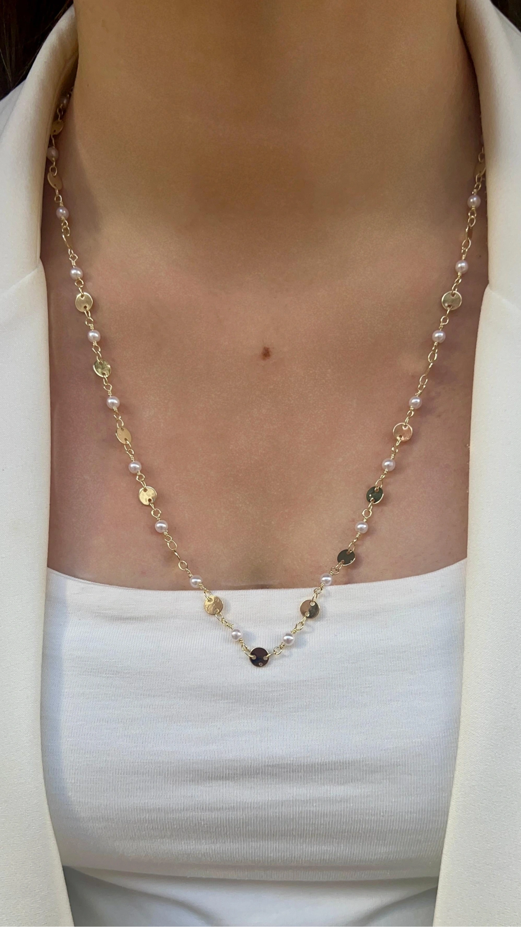 Sıralı Pul İnci Model Gold Altın Kaplama Kolye