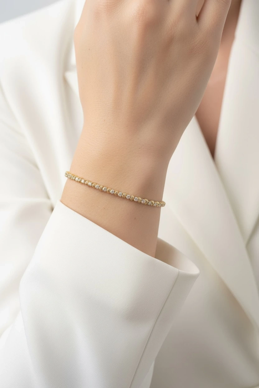 Sıralı Dorika Taş Detay Gold Altın Kaplama Bileklik
