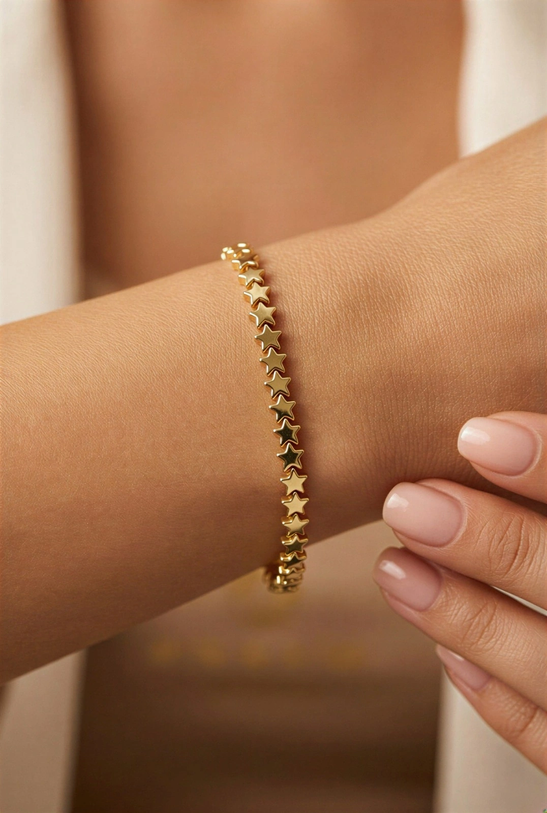 Sıralı Düz Yıldız Model Gold Altın Kaplama Bileklik