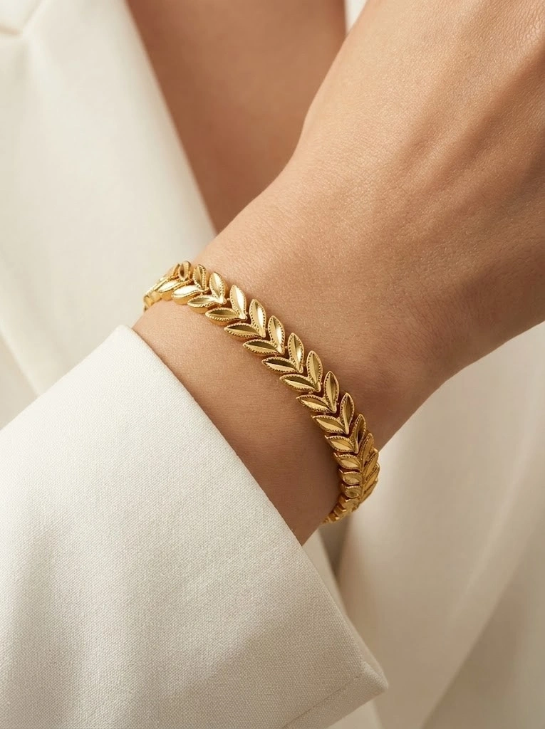 Desenli Başak Detay Gold Altın Kaplama Kuyum Bileklik