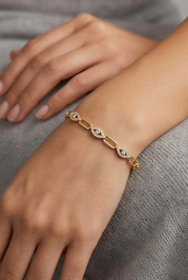 Sıralı Göz Model Gold Altın Kaplama Bileklik
