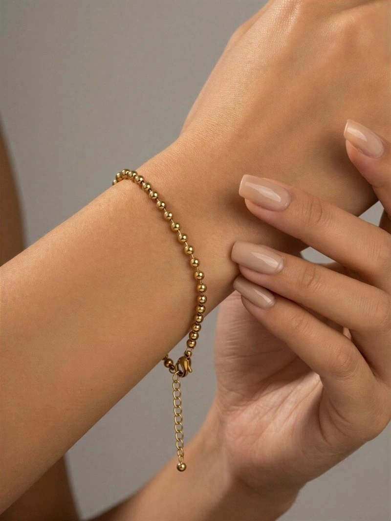 Sıralı İnce Dorika Model Gold Altın Kaplama Çelik Bileklik