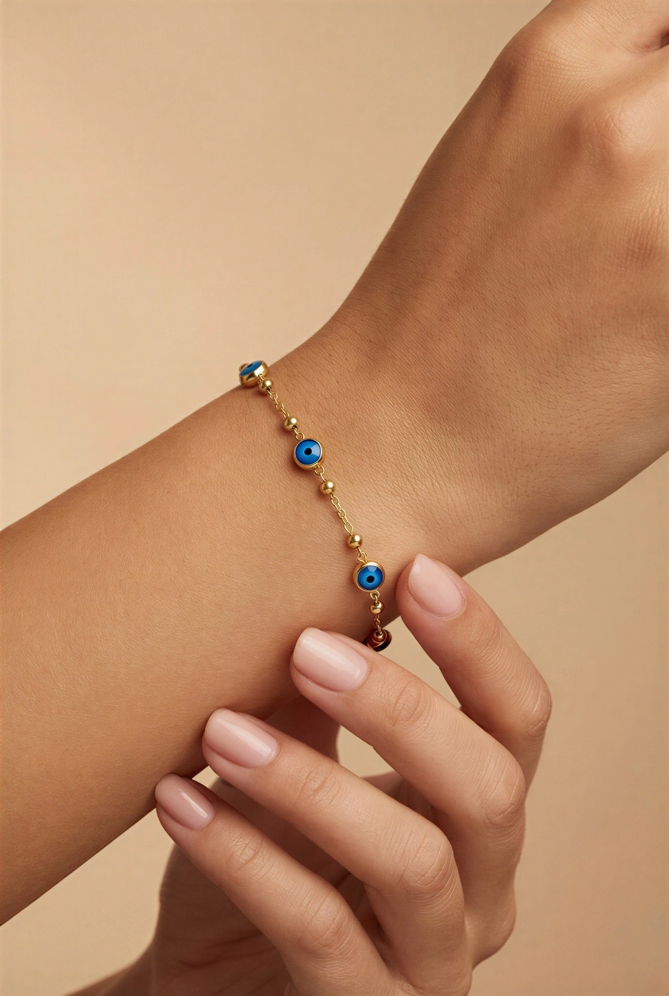 Sıralı Nazar Boncuk Model Gold Altın Kaplama Bileklik