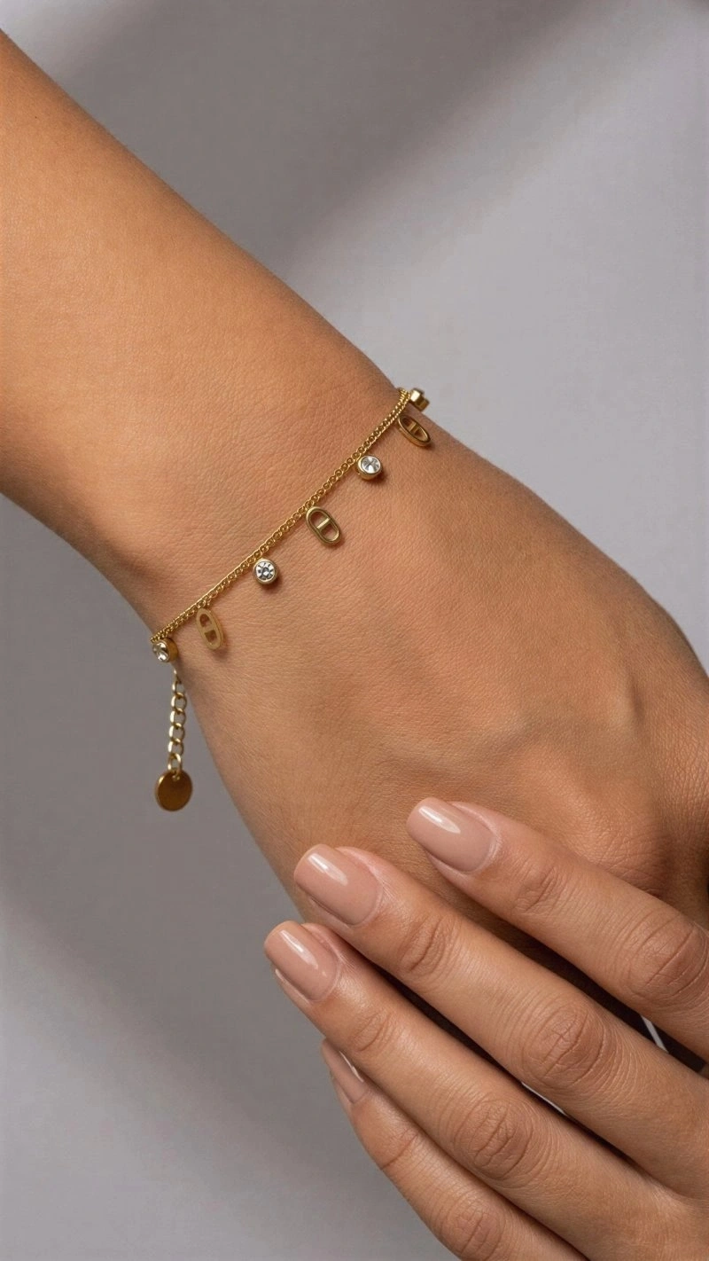 Sıralı Oval Halka Model Gold Altın Kaplama Çelik Bileklik