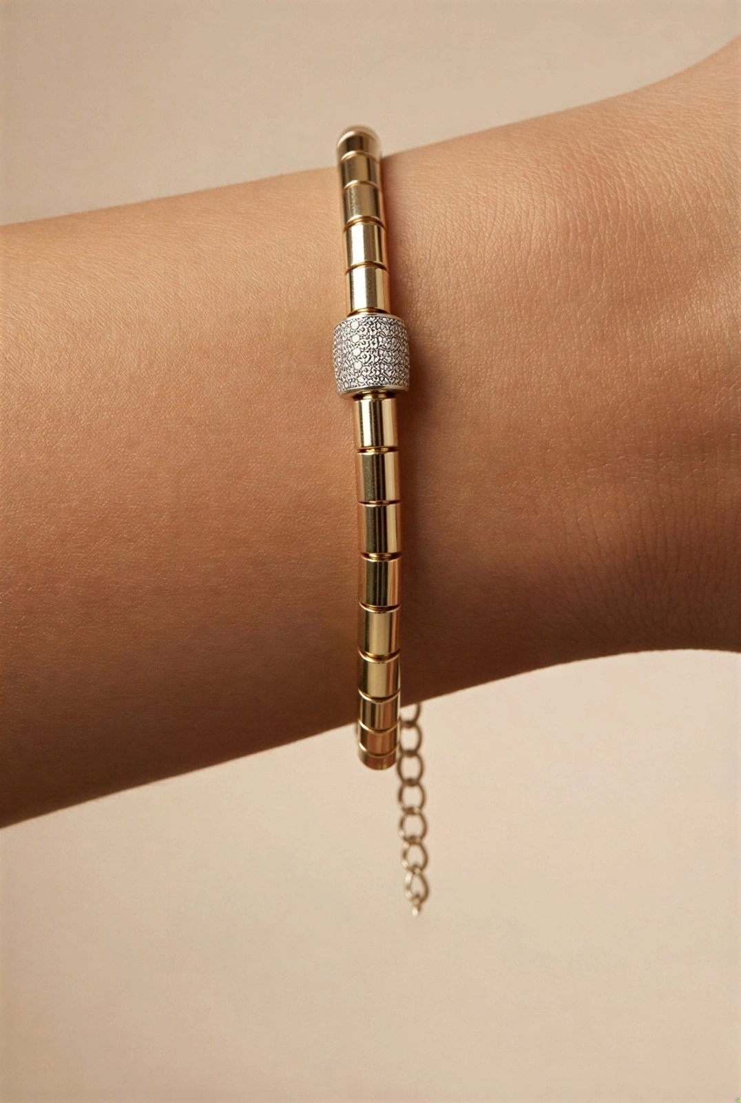 Sıralı Silindir Model Taş Detay Gold Altın Kaplama Bileklik