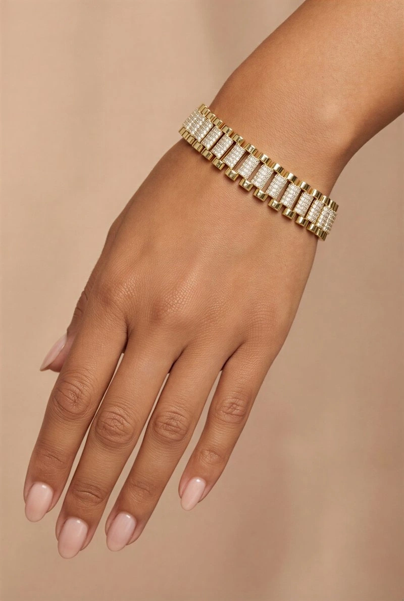 Sıralı Taş Detay Ray Model Gold Altın Kaplama Bileklik