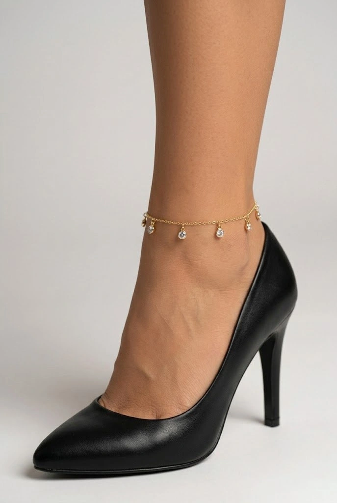 Sıralı Taş Model Gold Altın Kaplama Halhal