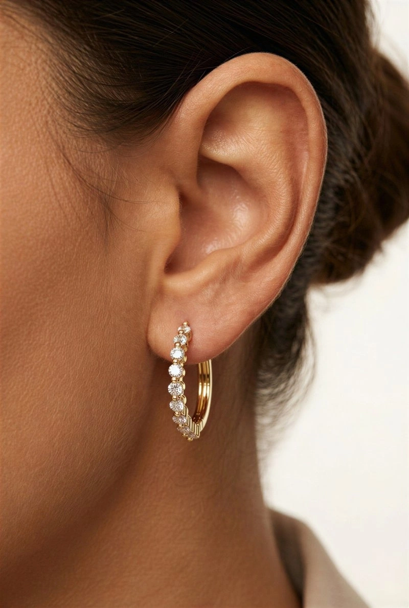 Sıralı Taş Model Gold Altın Kaplama Küpe