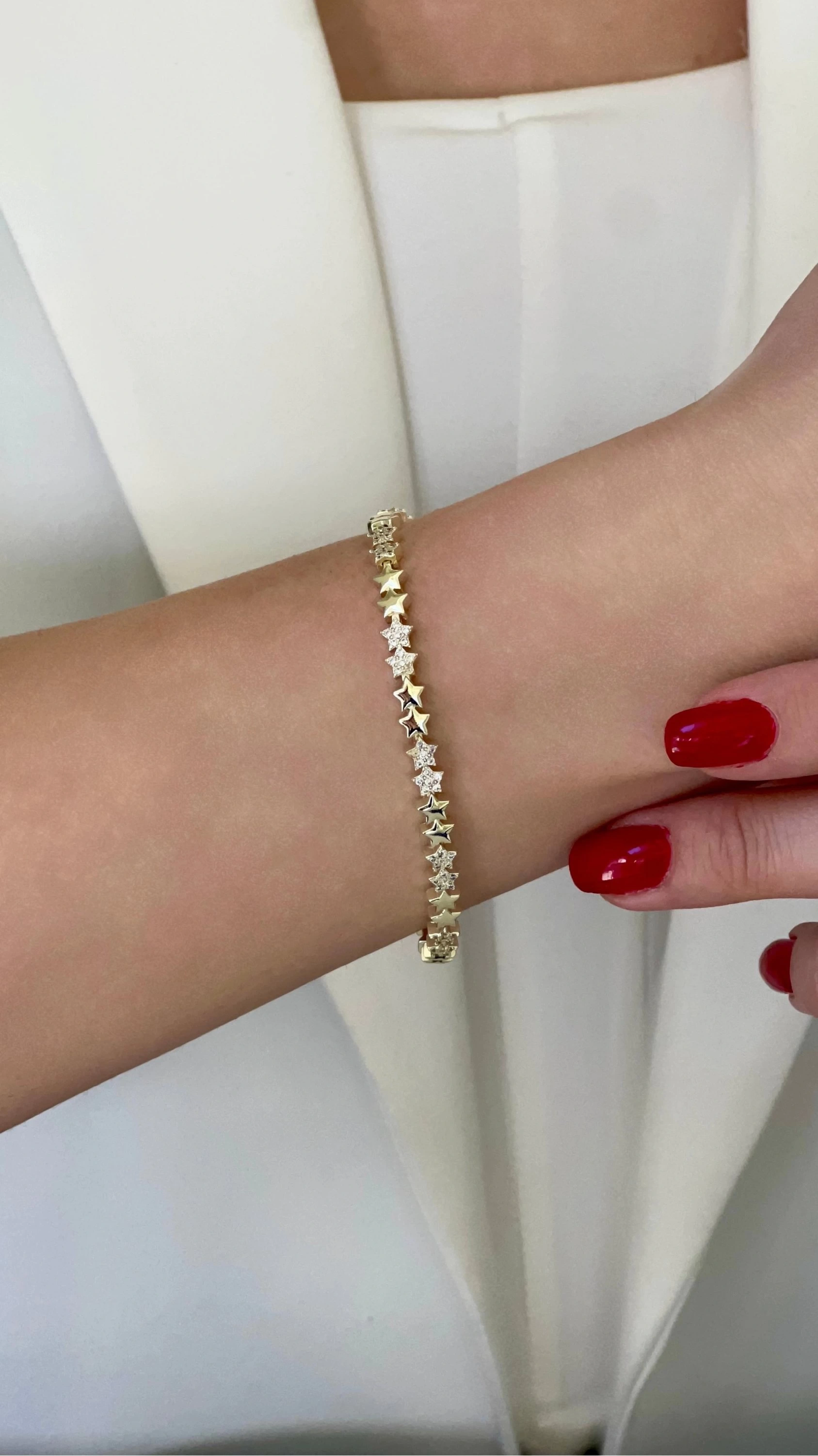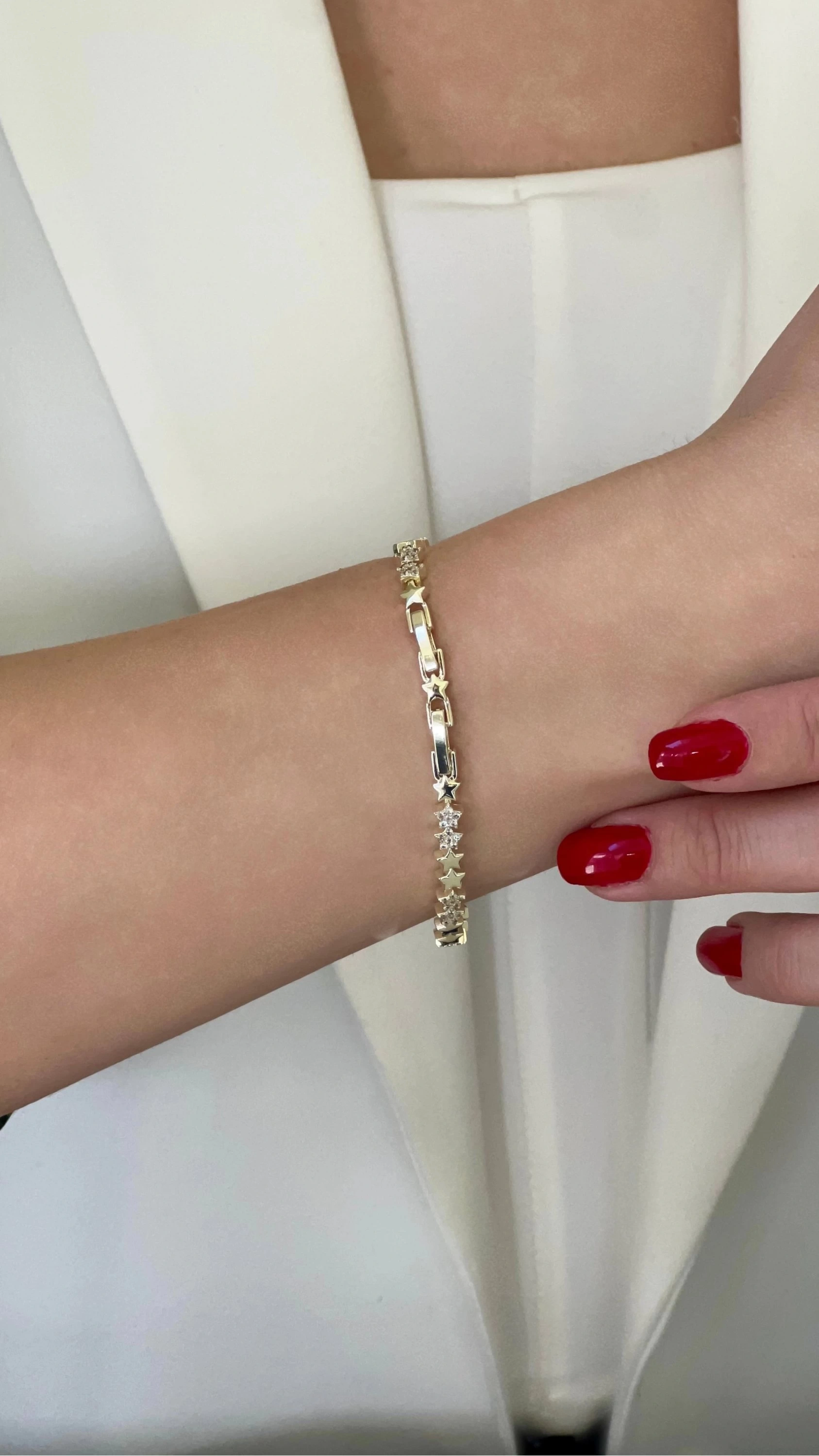Sıralı Taş Yıldız Model Gold Altın Kaplama Bileklik