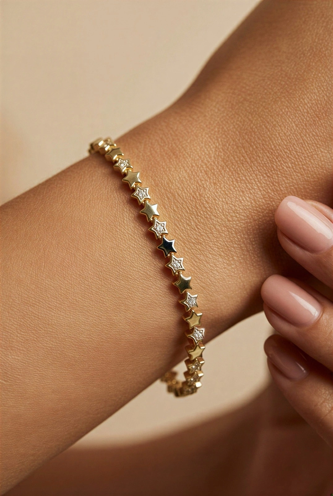 Sıralı Taşlı Yıldız Desen Gold Altın Kaplama Bileklik