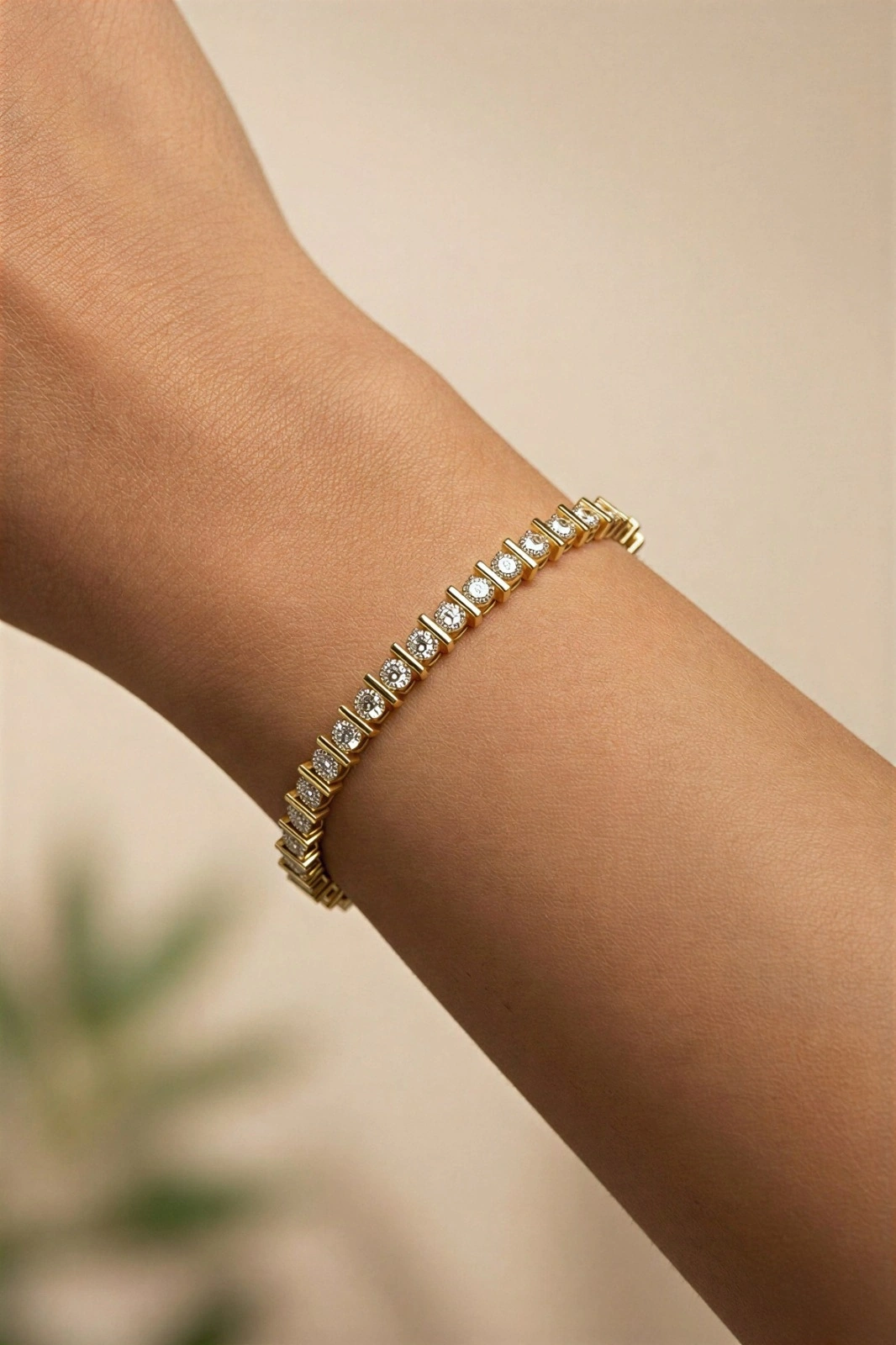 Sıralı Tek Taş Model Gold Altın Kaplama Bileklik
