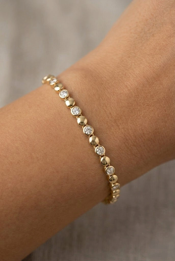 Sıralı Yuvarlak Model Taş Detay Gold Altın Kaplama Bileklik