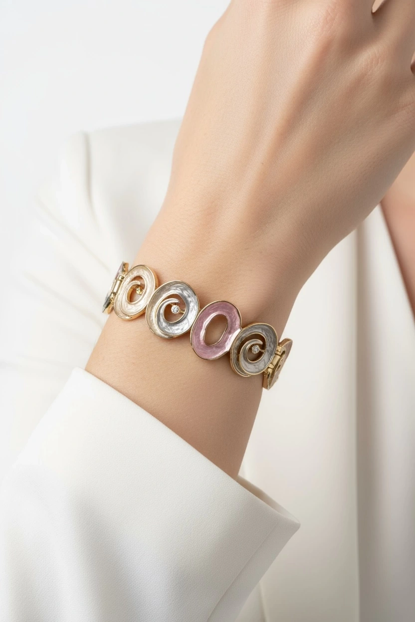 Pembe Gri Renk Oval Desenli Model Kelepçe Bileklik