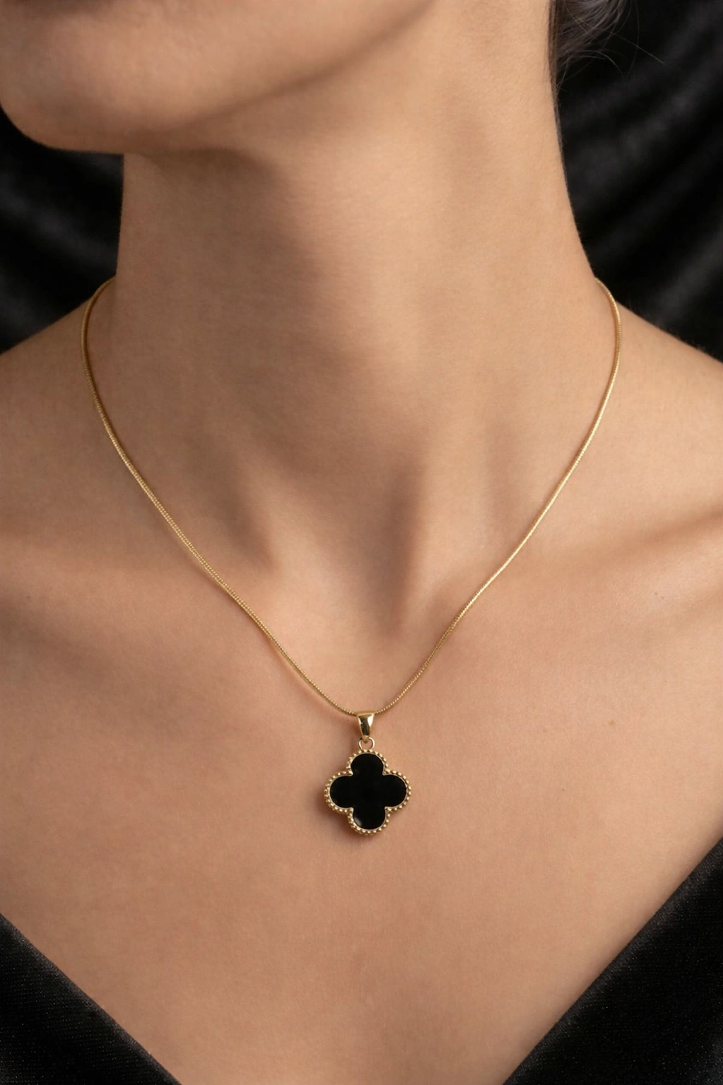 Siyah Detay Yonca Model Gold Altın Kaplama Kolye (Kopya 1)