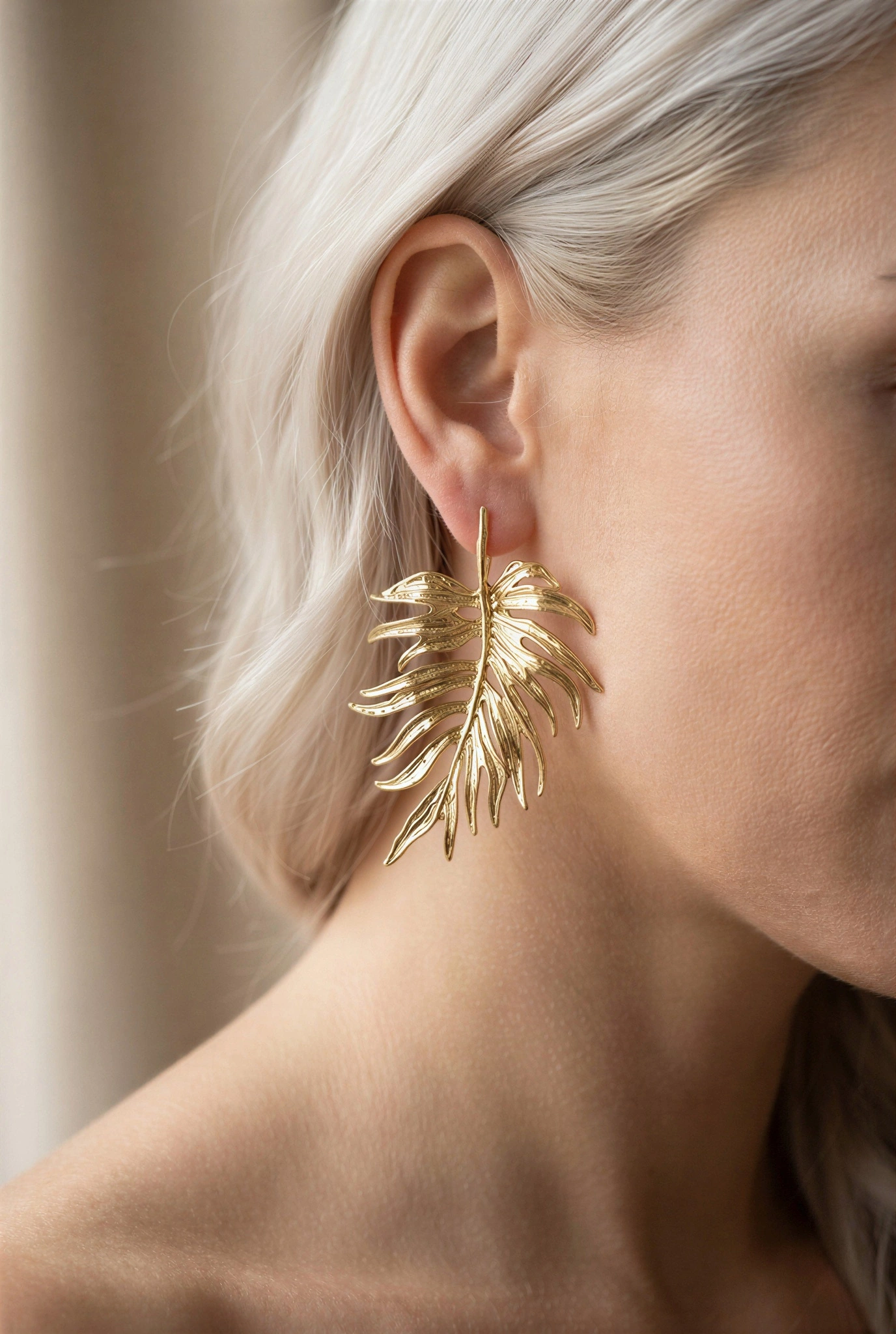 Sarı Yaprak Model Gold Altın Kaplama Küpe