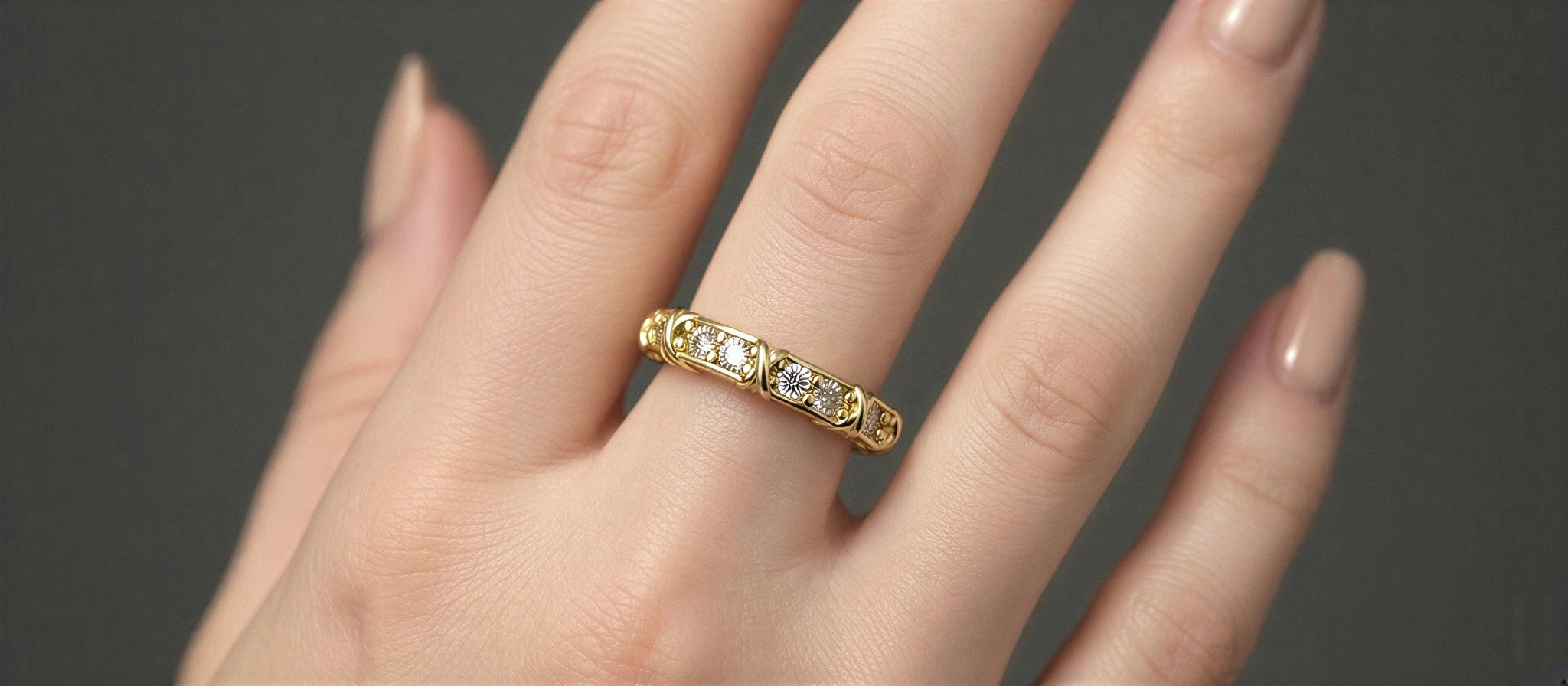 Çarpı Model Taş Detay Gold Altın Kaplama Yüzük