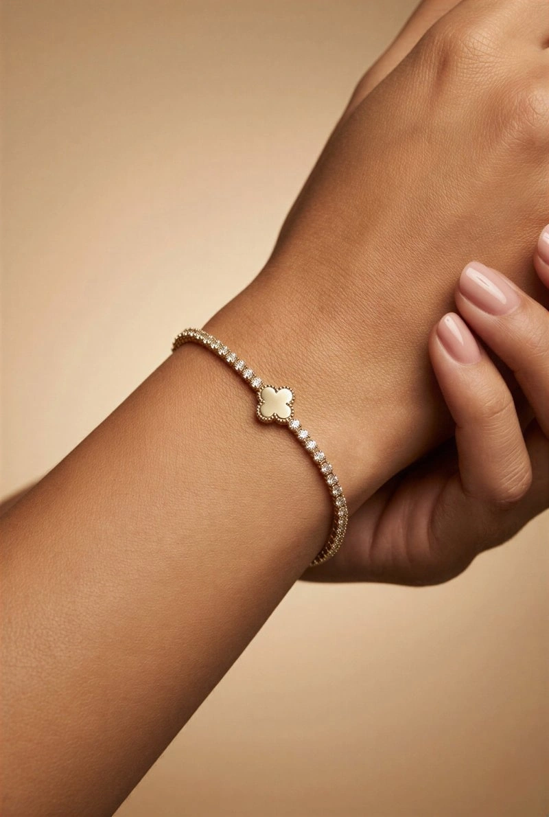 Su Yolu Model Desensiz Yonca Detay Gold Altın Kaplama Bileklik