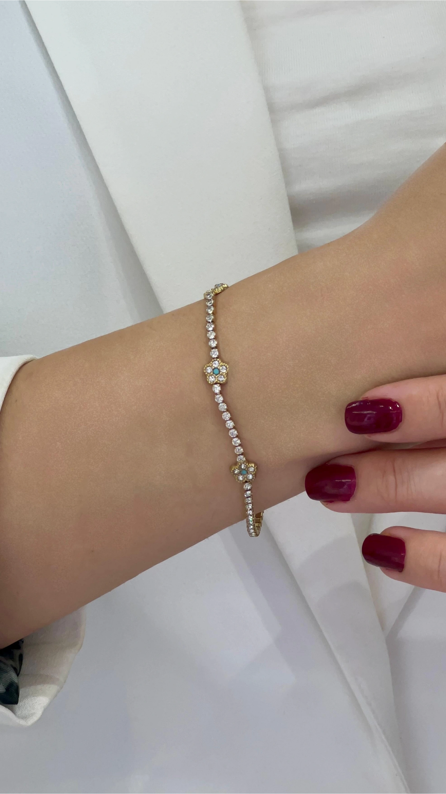 Su Yolu Model Mavi Taşlı Çiçek Detay Gold Altın Kaplama Çelik Bileklik