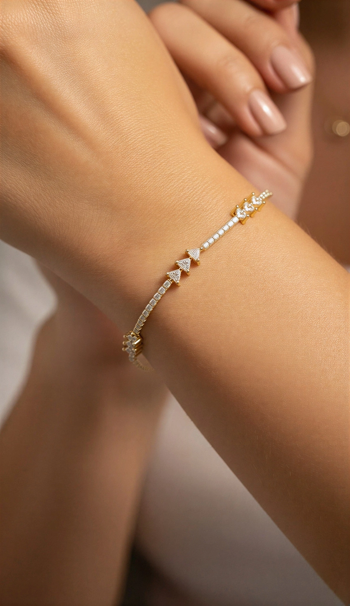 Su Yolu Model Taşlı Üçgen Detay Gold Altın Kaplama Bileklik