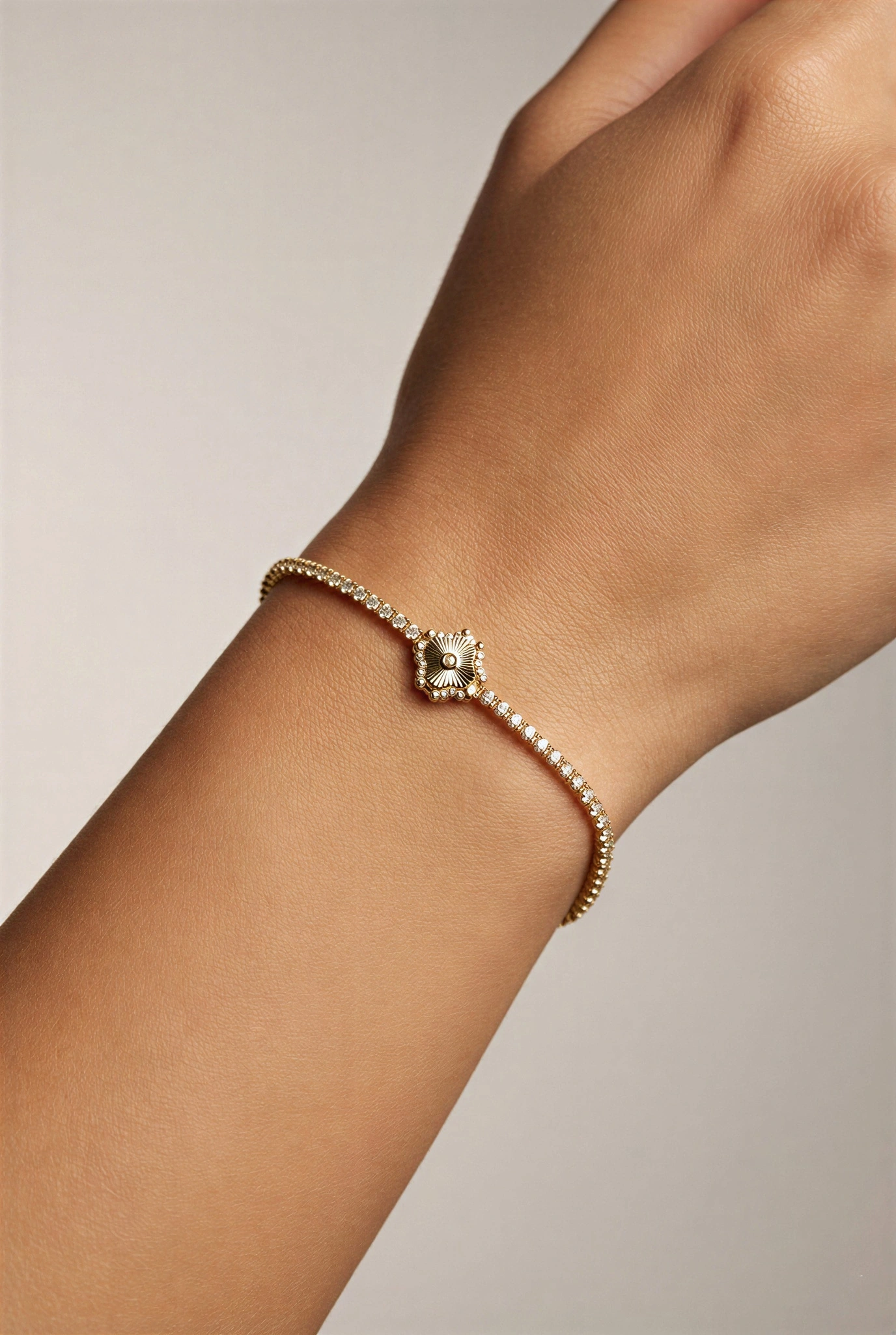 Su Yolu Model Taş Detay Yonca Model Gold Altın Kaplama Bileklik