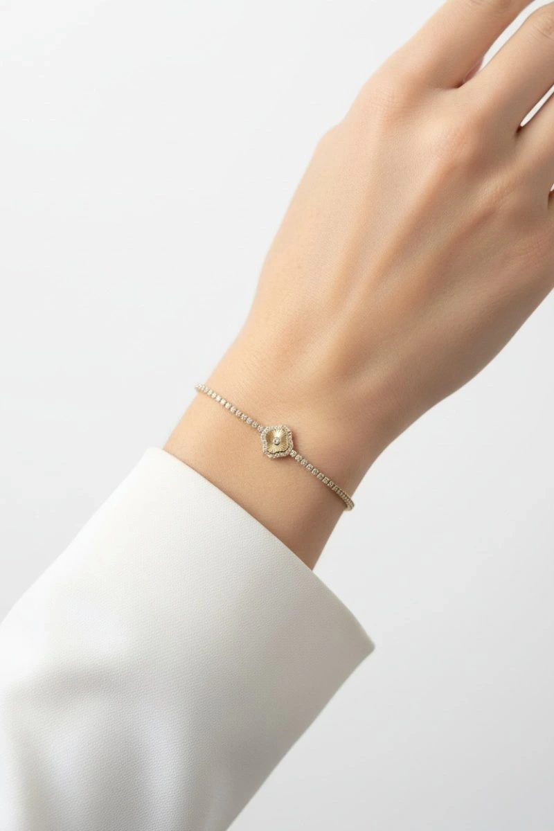 Su Yolu Zincir Çizgili Yonca Detay Gold Altın Kaplama Bileklik