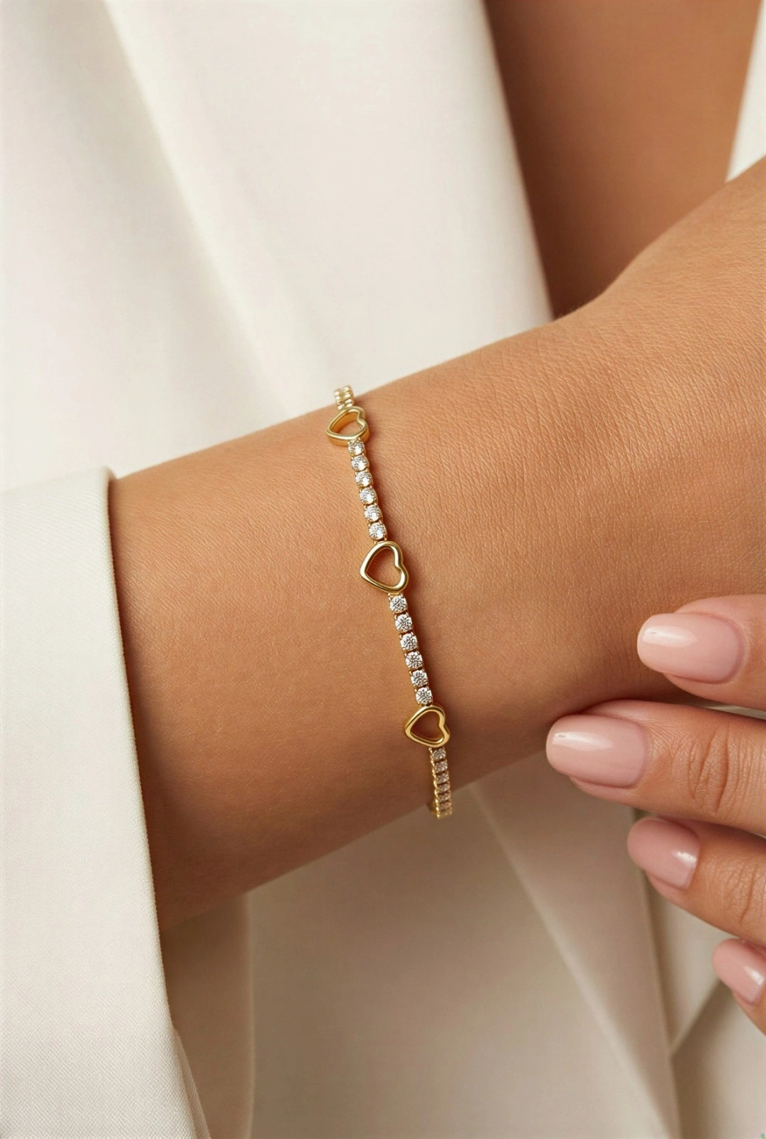 Su Yolu Zincir Üç Kalp Model Gold Altın Kaplama Bileklik