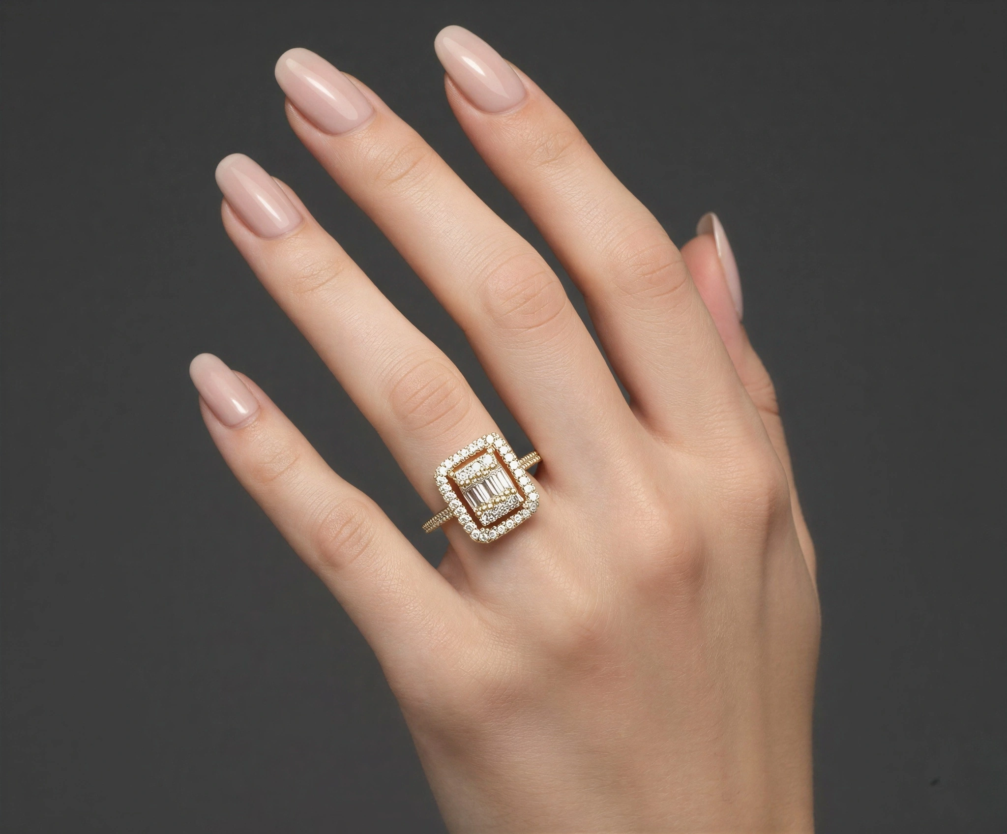 Baget Model Taş Detay Gold Altın Kaplama Yüzük