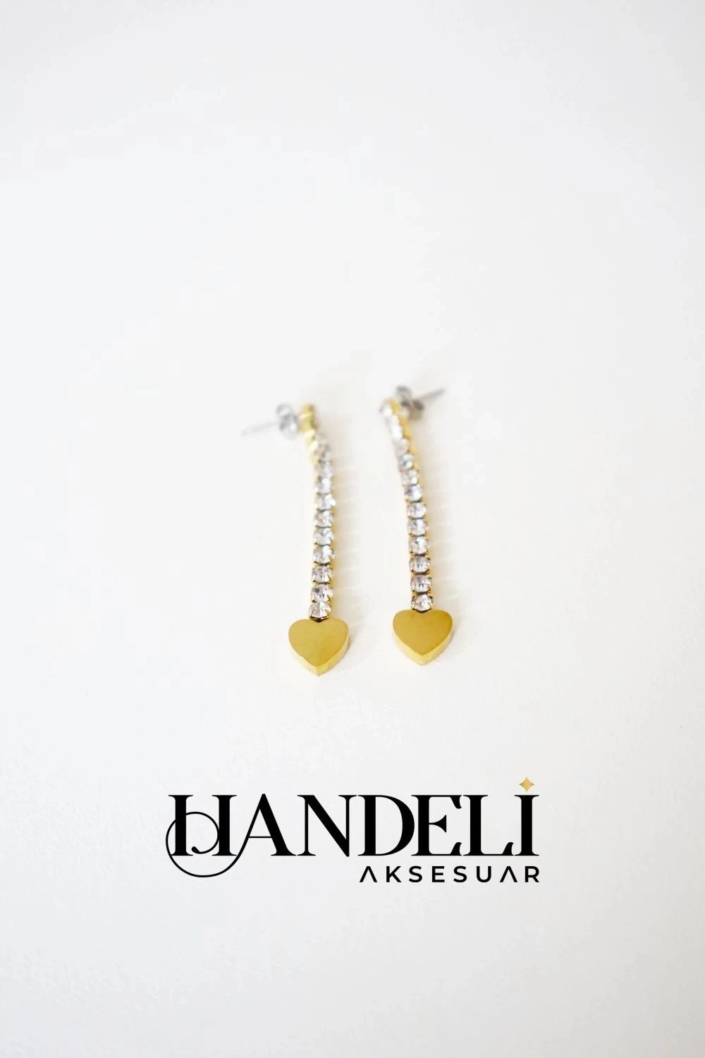 Suyolu Model Kalp Detay Gold Altın Kaplama Küpe
