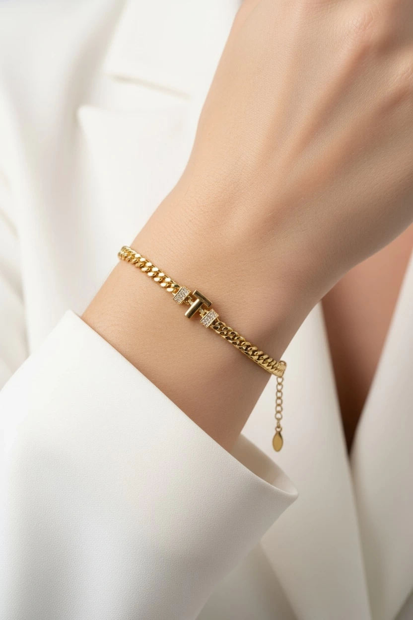 T Harf Taş Detay Altın Kaplama Bileklik