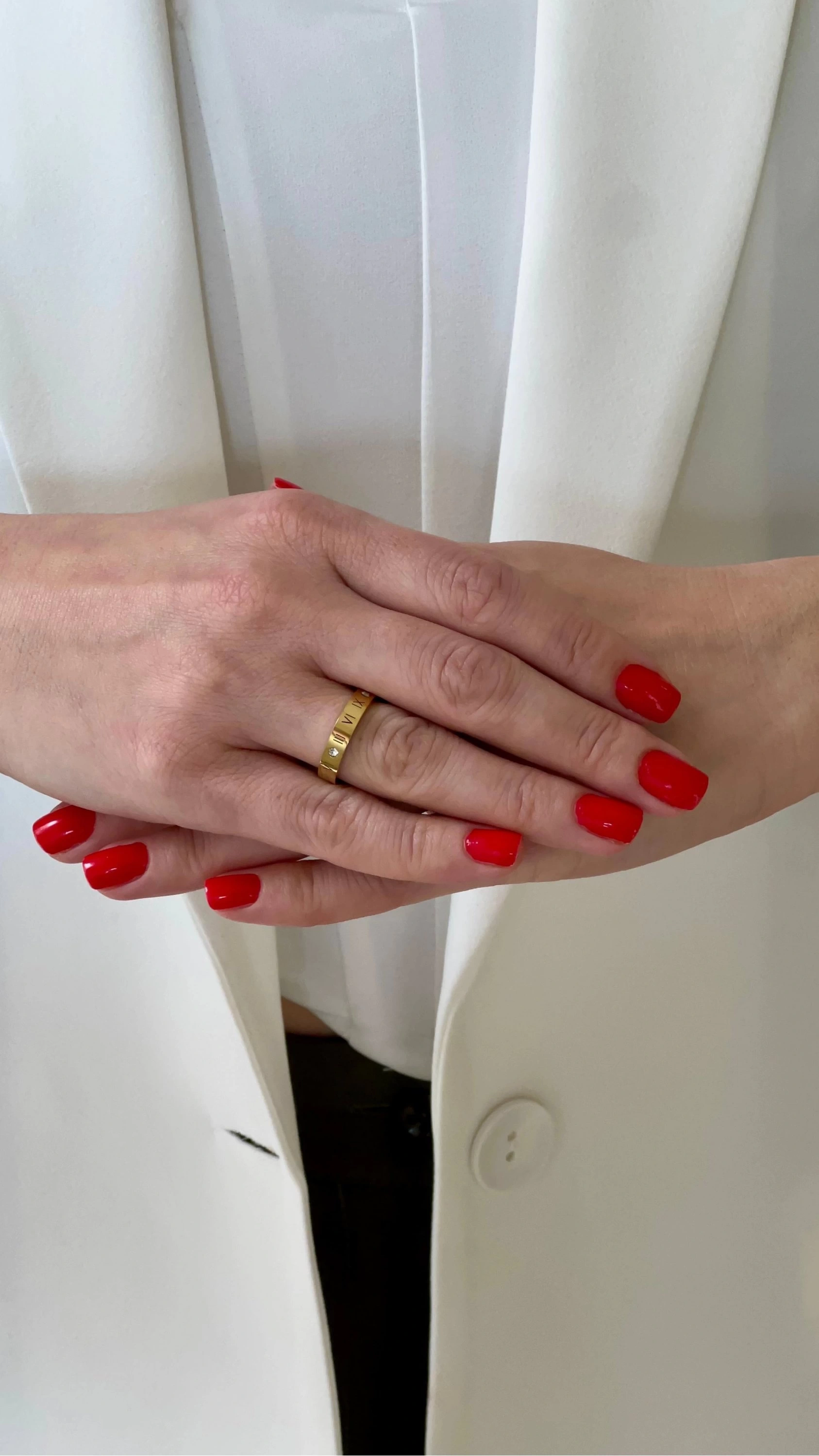T Model Roma Rakamlı Taş Detay Gold Altın Kaplama Çelik Yüzük