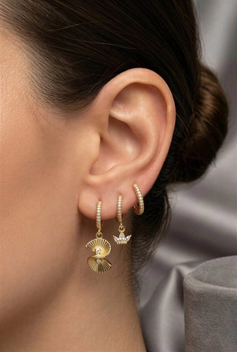 Taç Model Gold Altın Kaplama Üçlü Küpe