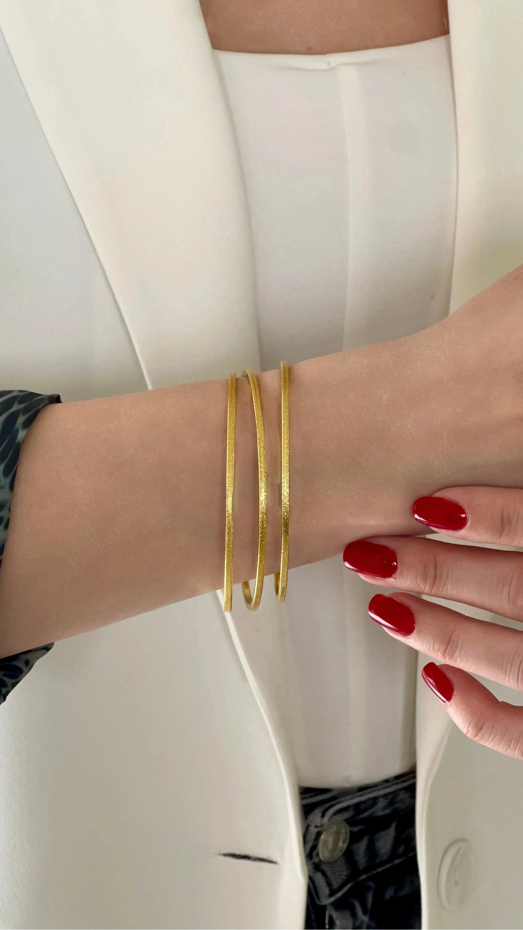 Üçlü Tam Simli Ajda Model Gold Altın Kaplama Çelik Bileklik