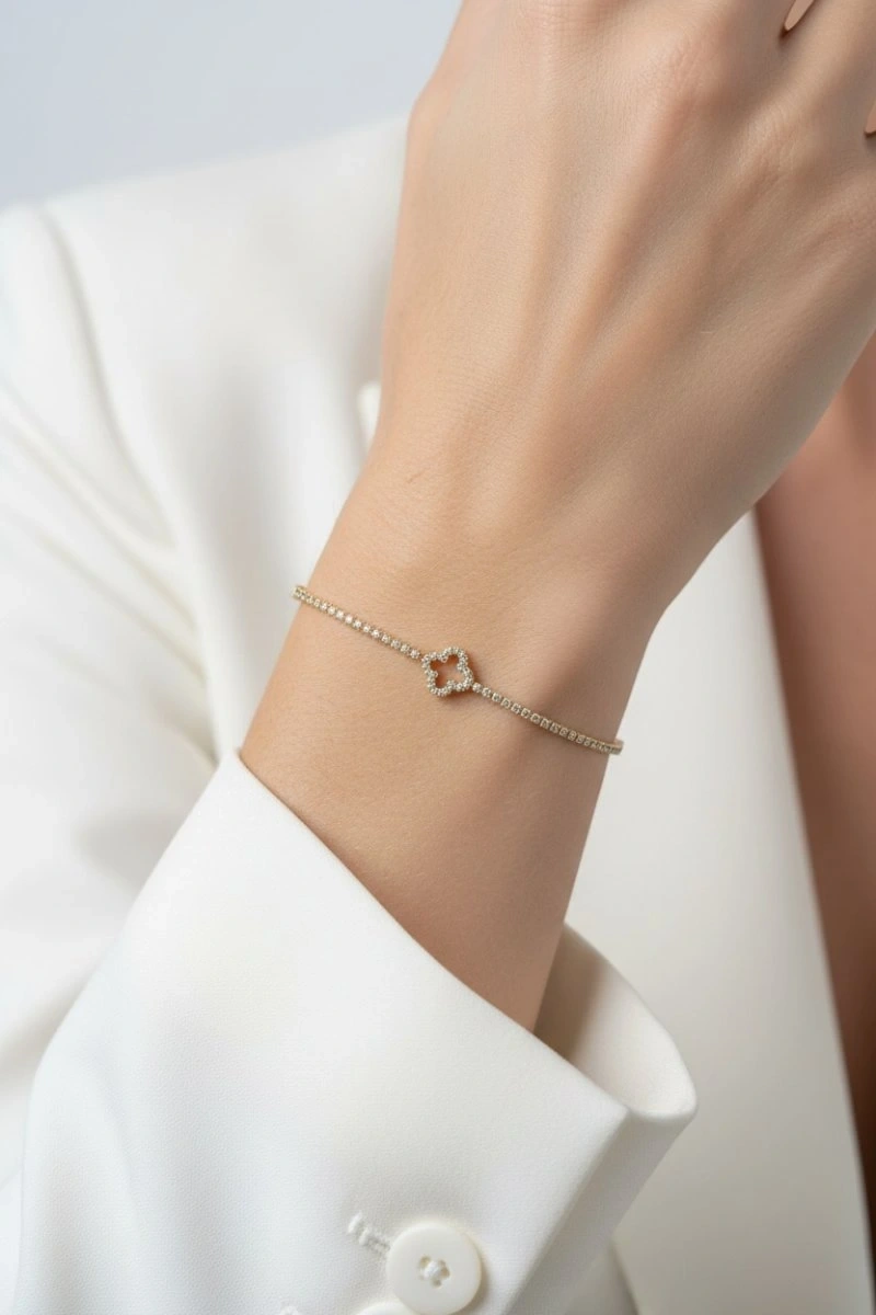Taş Detay Boş Yonca Model Gold Altın Kaplama Bileklik