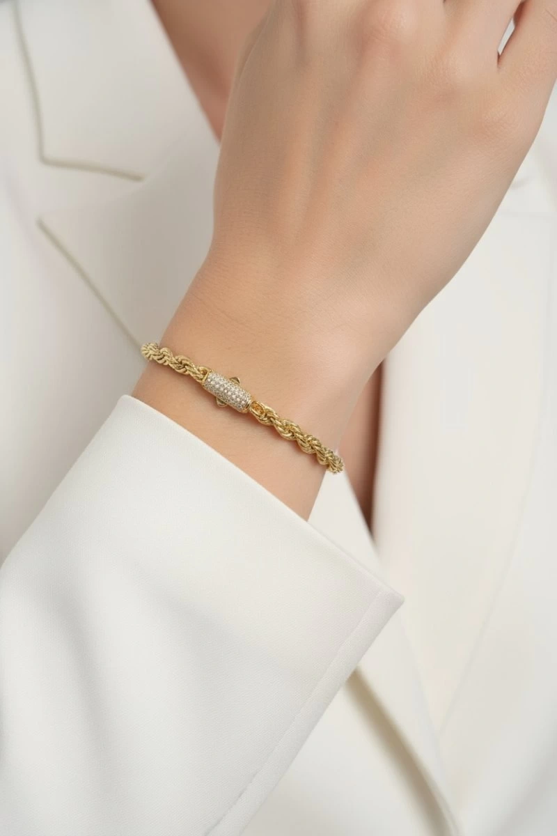 Taş Detay Burgu Gurmet Model Gold Altın Kaplama Bileklik