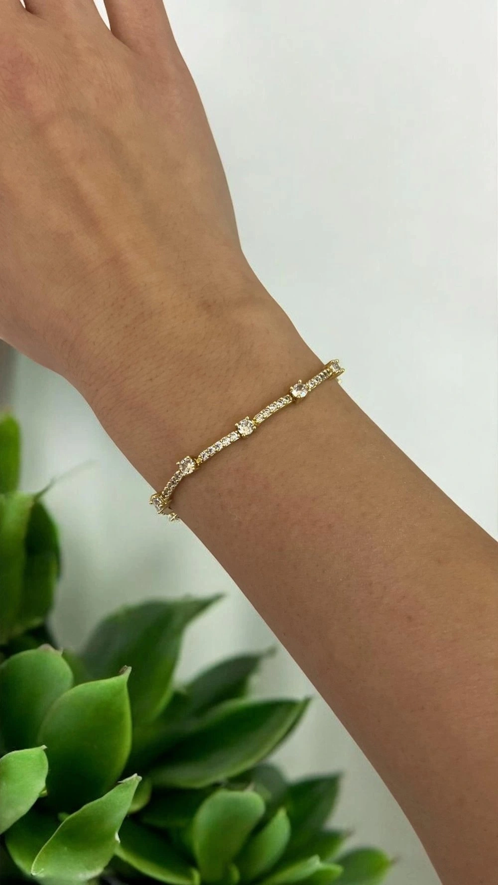 Taş Detay Çizgi Model Gold Altın Kaplama Bileklik