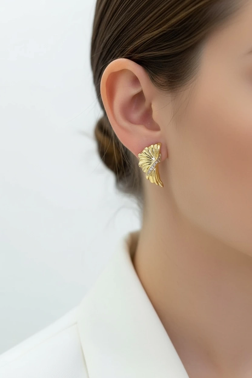 Taş Detay Kanat Model Gold Altın Kaplama Küpe