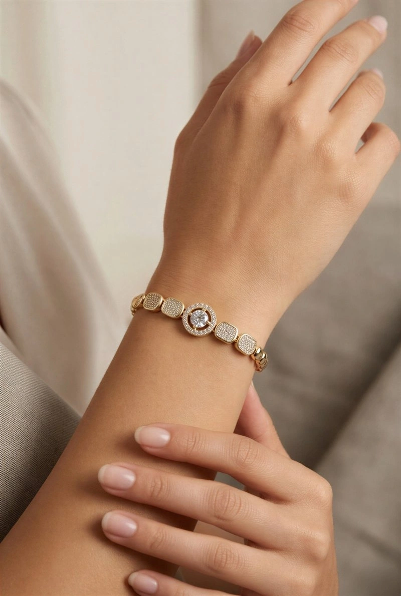 Taş Detay Pusula Model Gold Altın Kaplama Bileklik