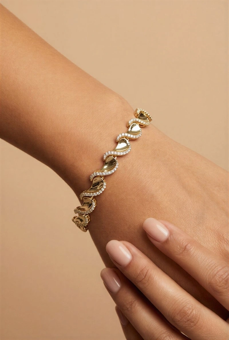 Taş Detay Sarmal Geçiş Detay Gold Altın Kaplama Bileklik
