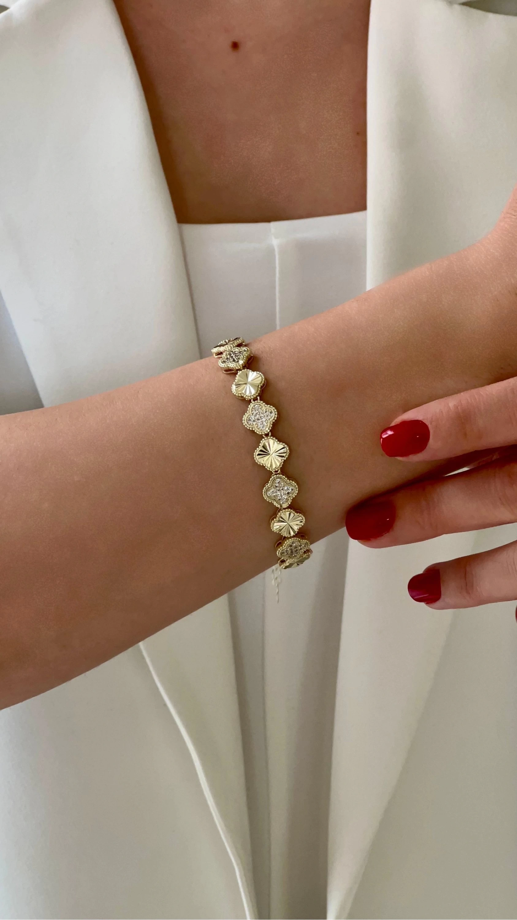 Taş Detay Sıra Yonca Model Gold Altın Kaplama Bileklik