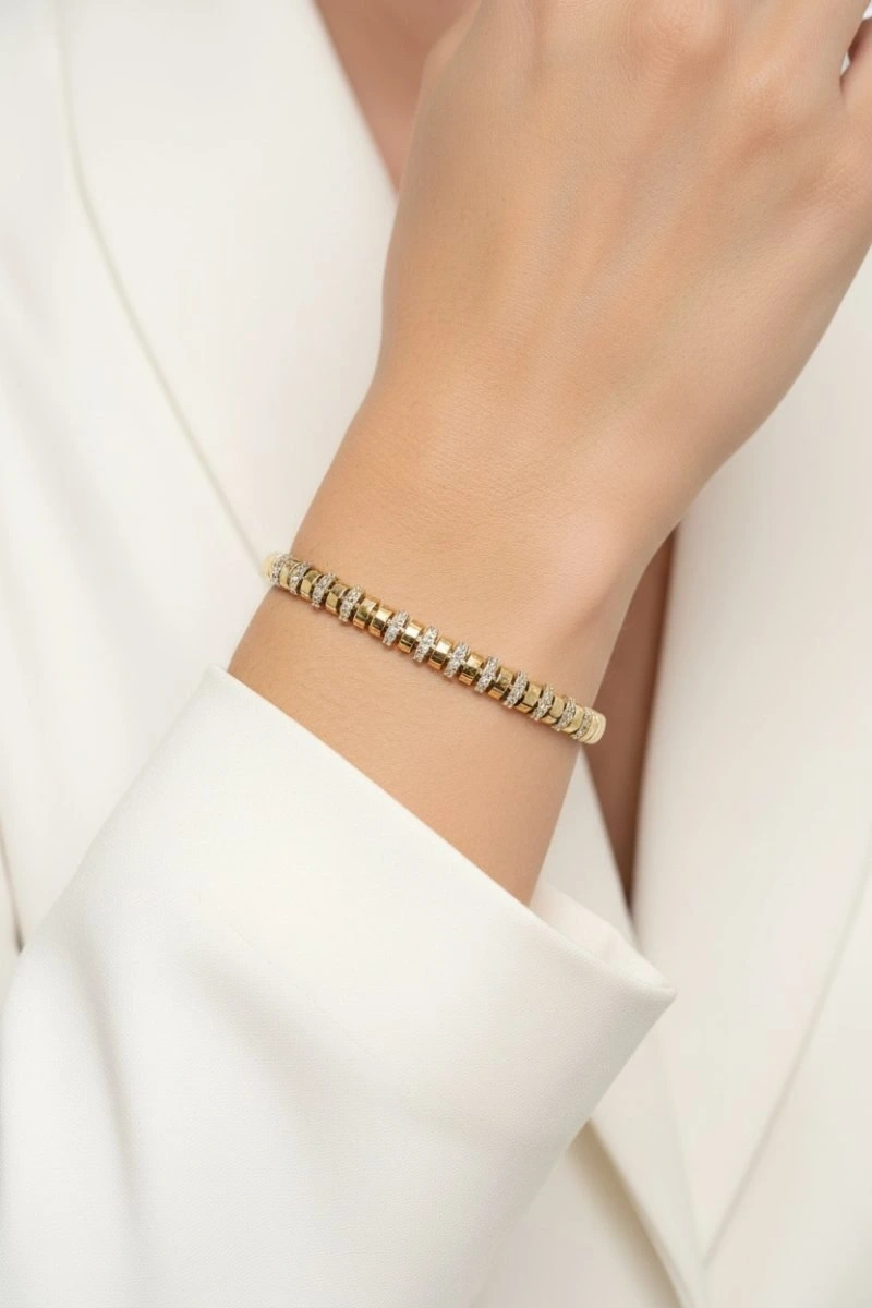 Taş Detay Yarım Halka Model Gold Altın Kaplama Bileklik