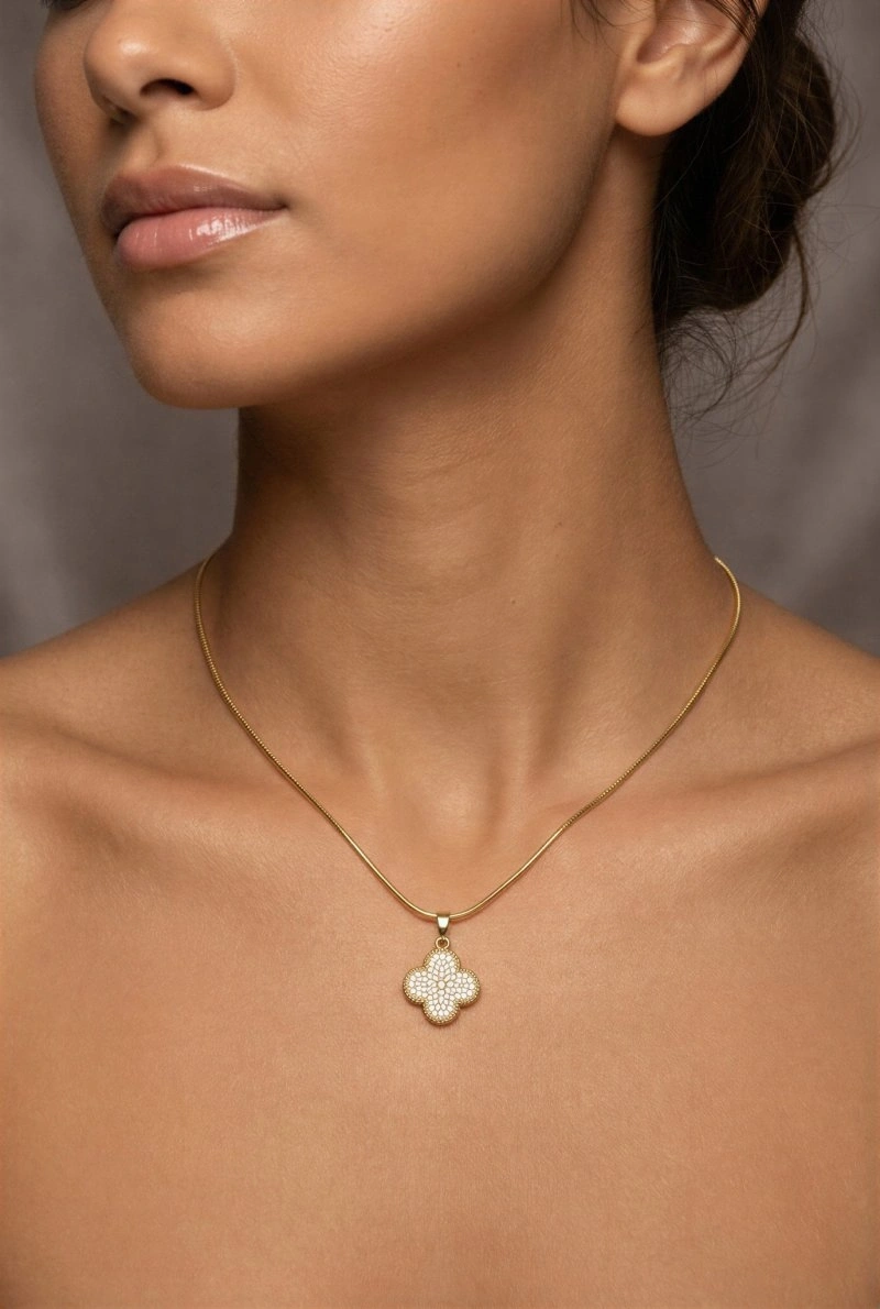 Taş Detay Yonca Model Gold Altın Kaplama Kolye