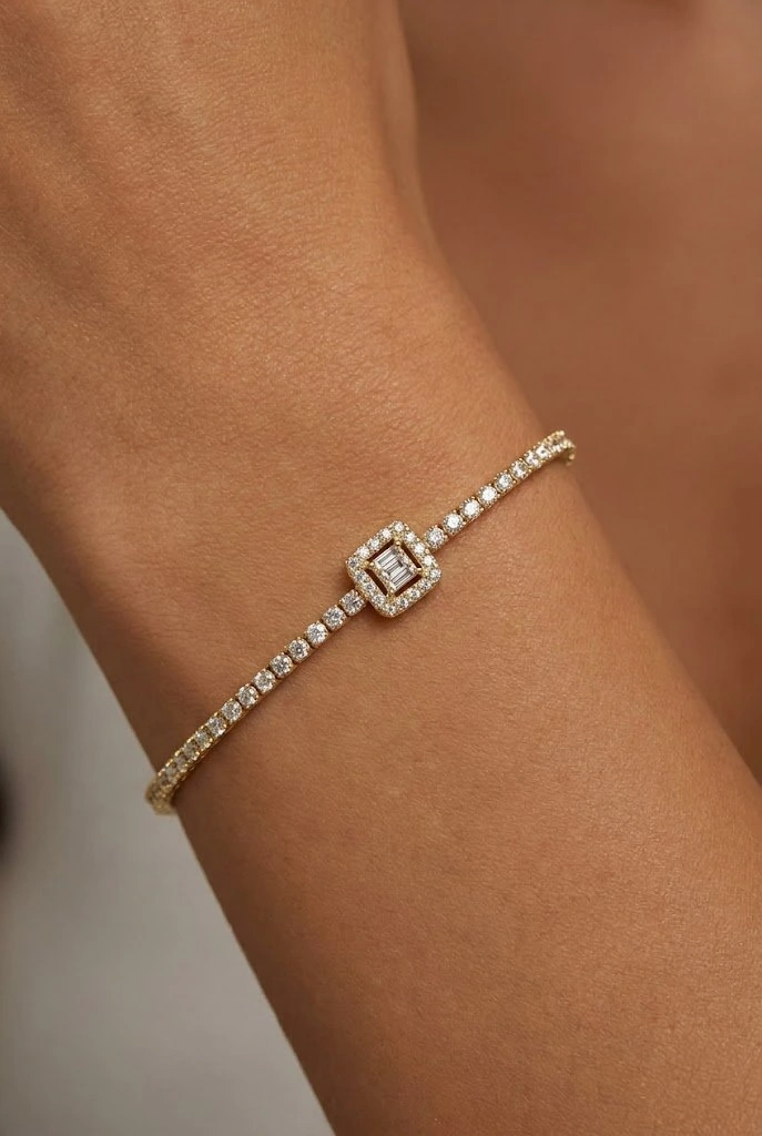 Taşlı Baget Model Gold Altın Kaplama Su Yolu Bileklik