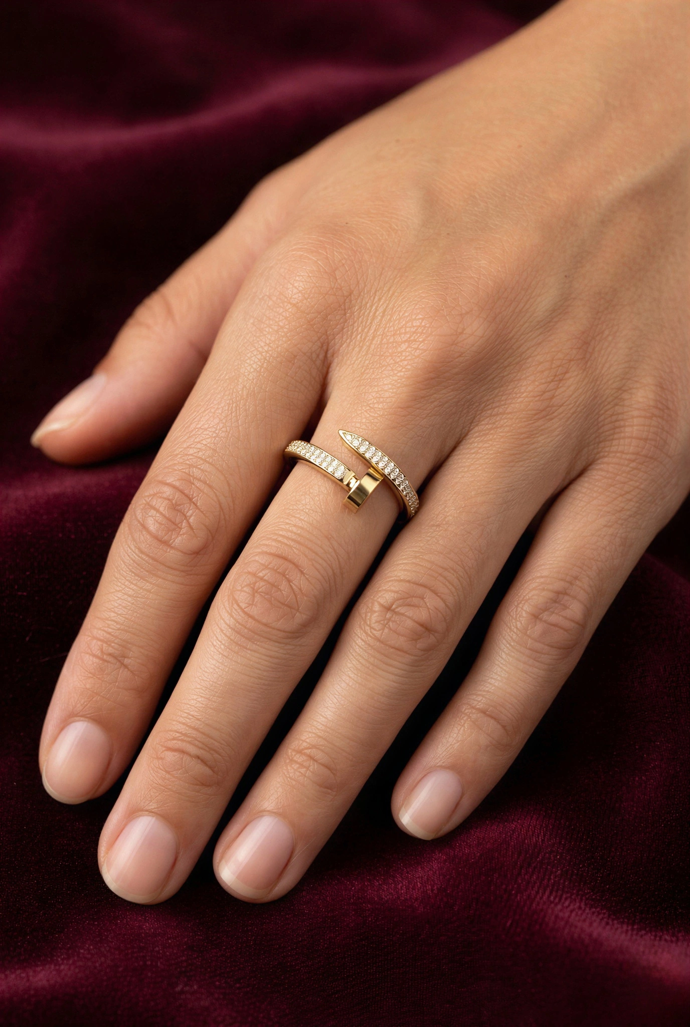 Taşlı Çivi Model Gold Altın Kaplama Yüzük