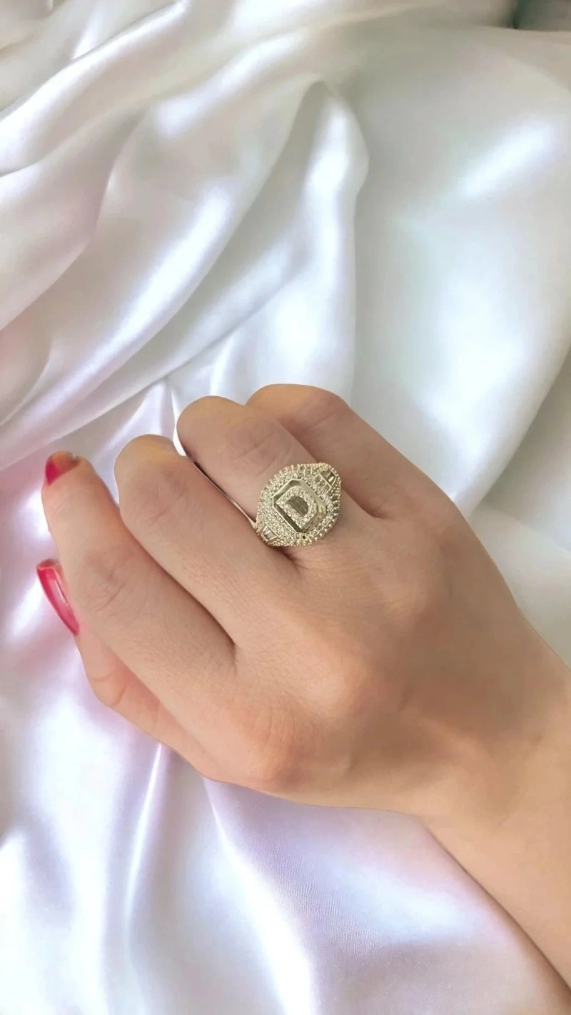 Taşlı Harf Detay Gold Altın Kaplama Yüzük