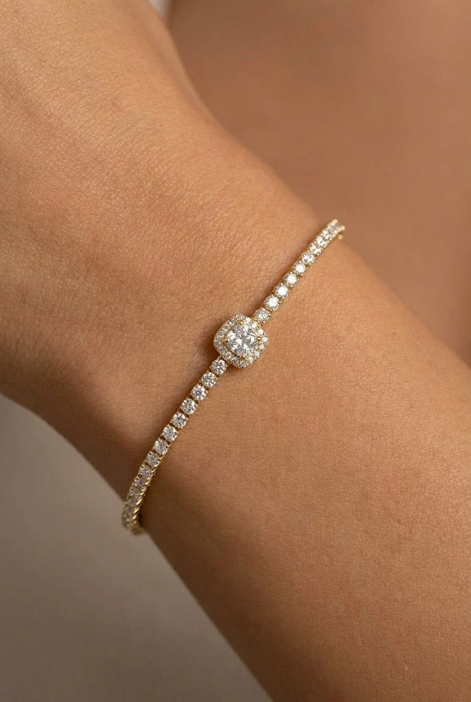 Taşlı Kare Model Gold Altın Kaplama Su Yolu Bileklik