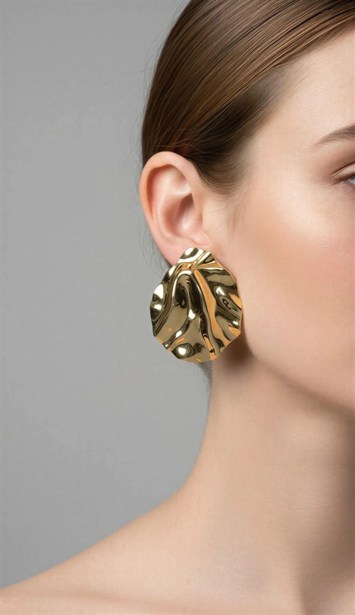 Desenli Yuvarlak Model Gold Altın Kaplama Küpe