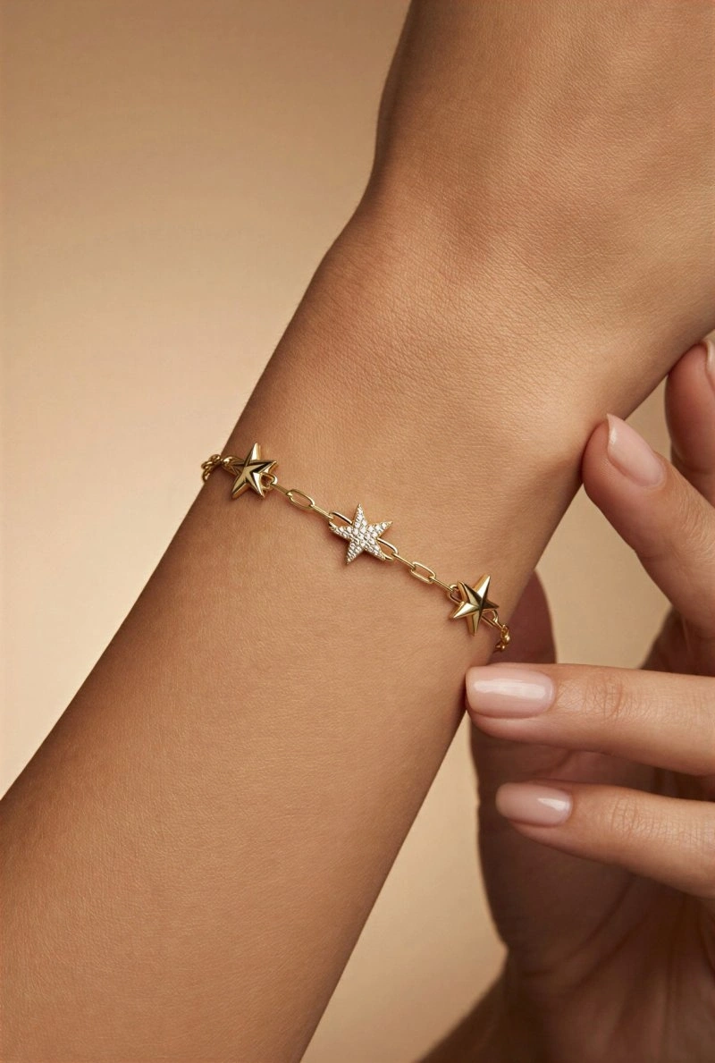 Taşlı Yıldız Model Gold Altın Kaplama Bileklik