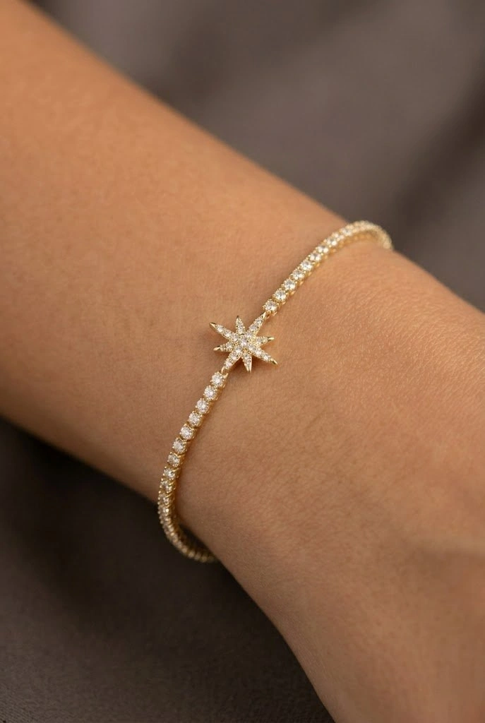 Taşlı Yıldız Model Gold Altın Kaplama Su Yolu Bileklik